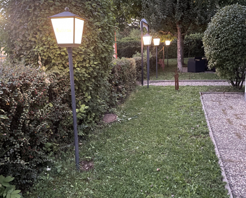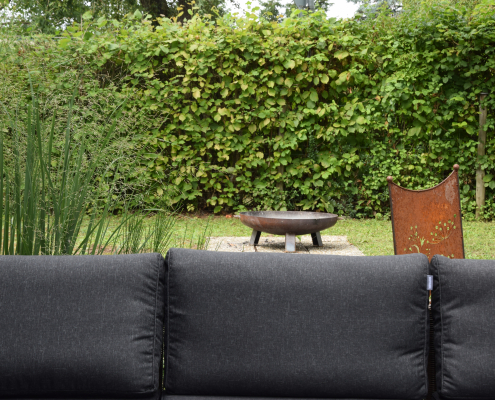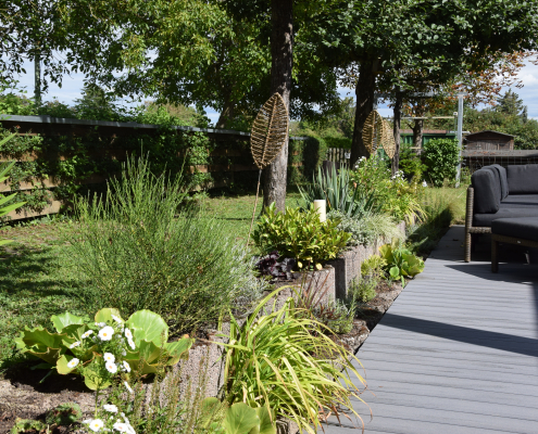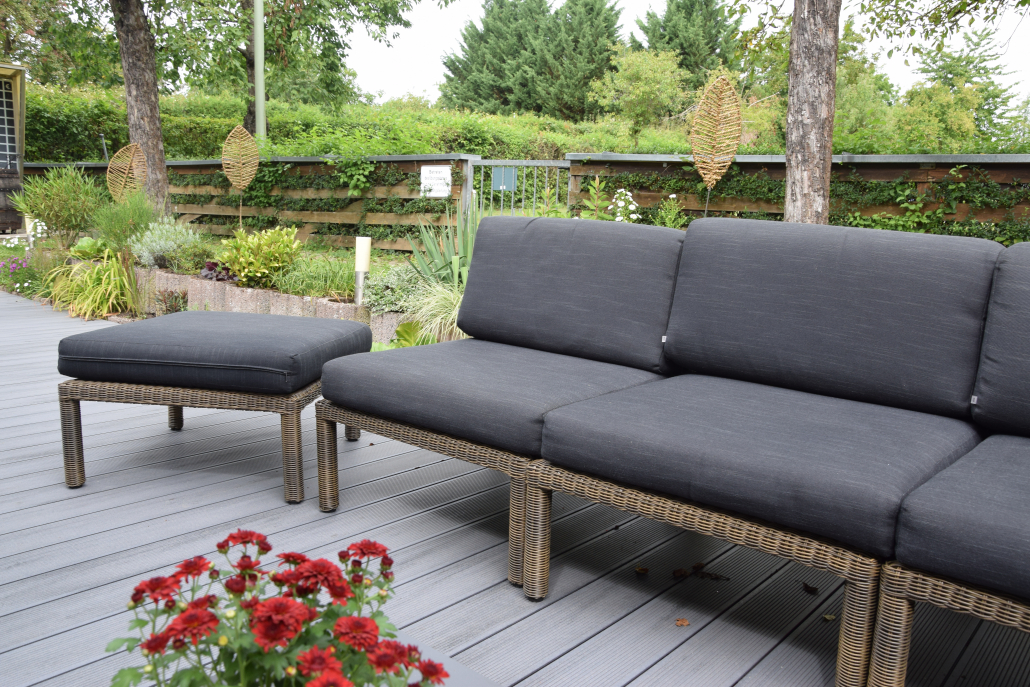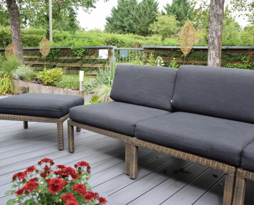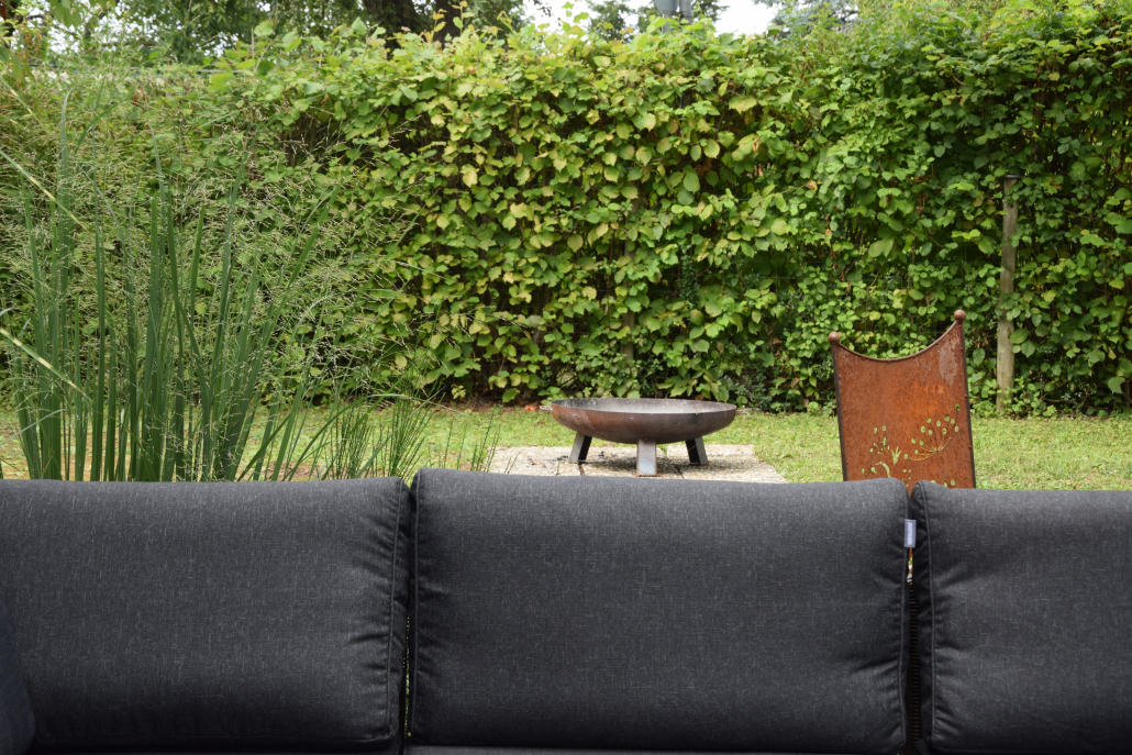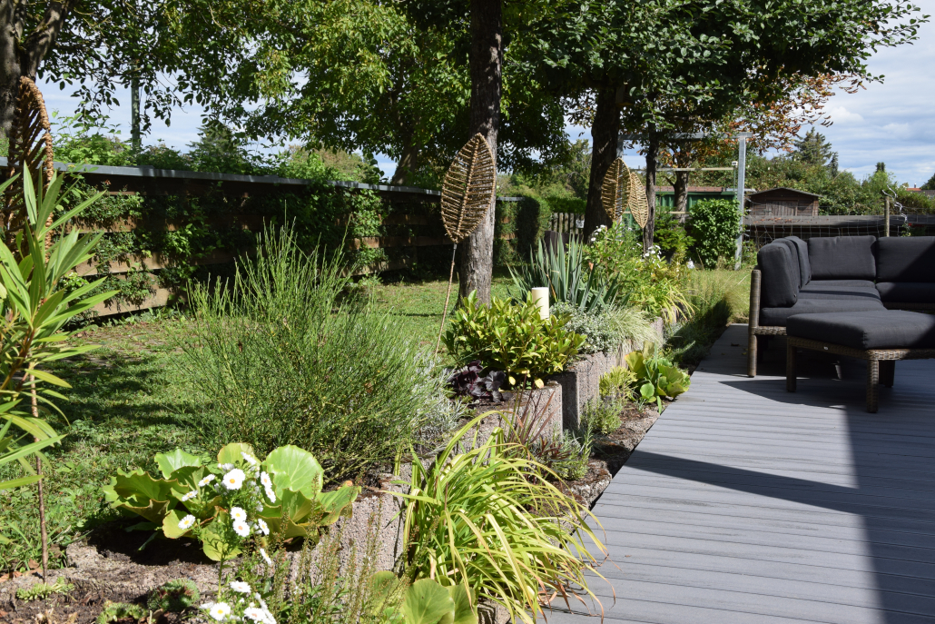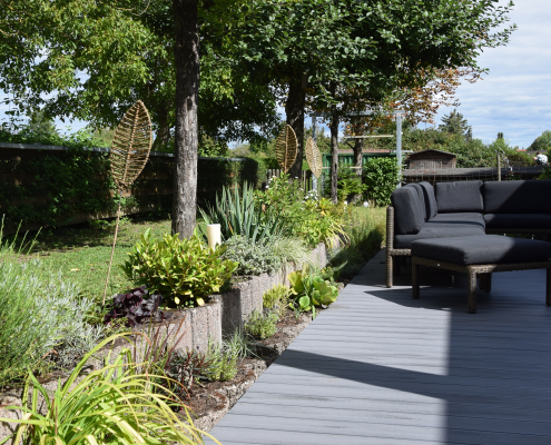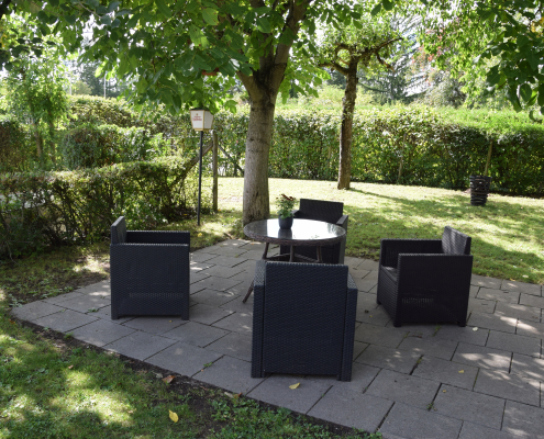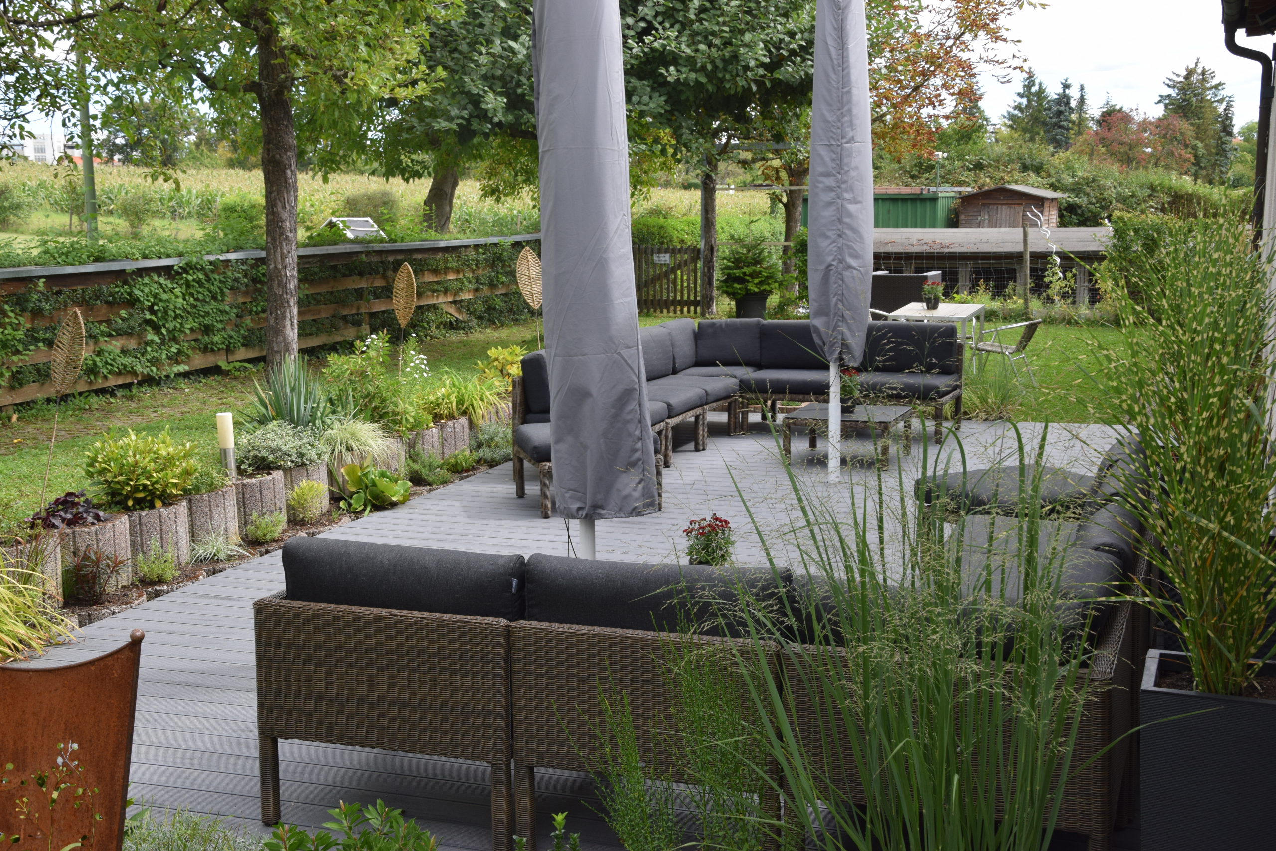 Die völlig neu gestaltete Terrasse mit großzügigen bequemen Loungemöbeln lädt zum entspannten Verweilen ein, die Gartenbeleuchtung schafft dabei eine einmalige Atmosphäre.