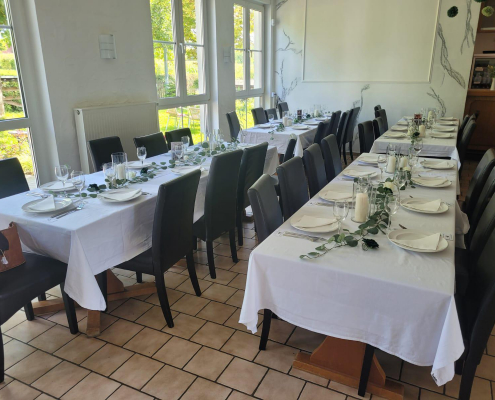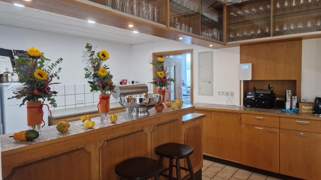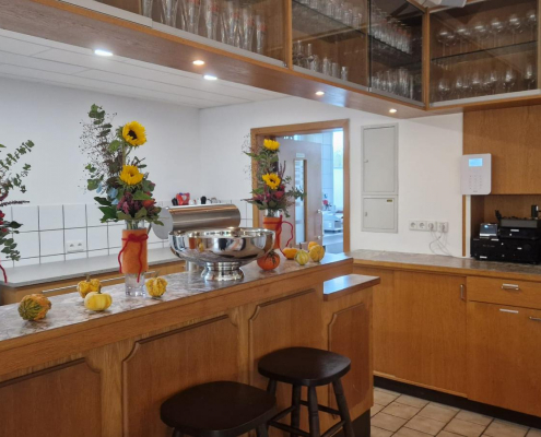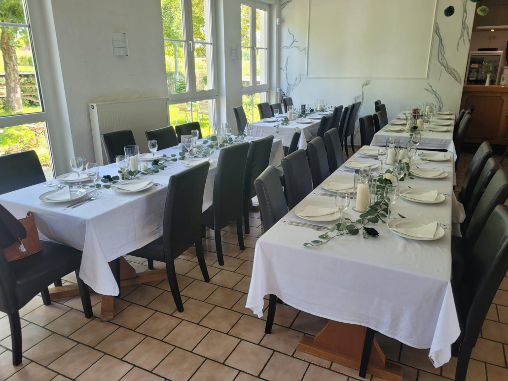 Der schön gestaltete, frisch renovierte Innenraum ist 65 m² groß und bietet Platz für ca. 50 Personen. Der optionale Nebenraum mit 25 m² kann z.B. als Tanzfläche, Buffetraum oder Rückzugsort für die Jüngeren genutzt werden.